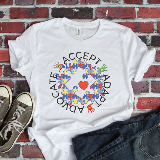 Accept Advocate Adapt - Autism Awareness Autism shirt - Sublimation Transfer Set/Ready To Press Sublimation Transfer/Sublimation Transfer
