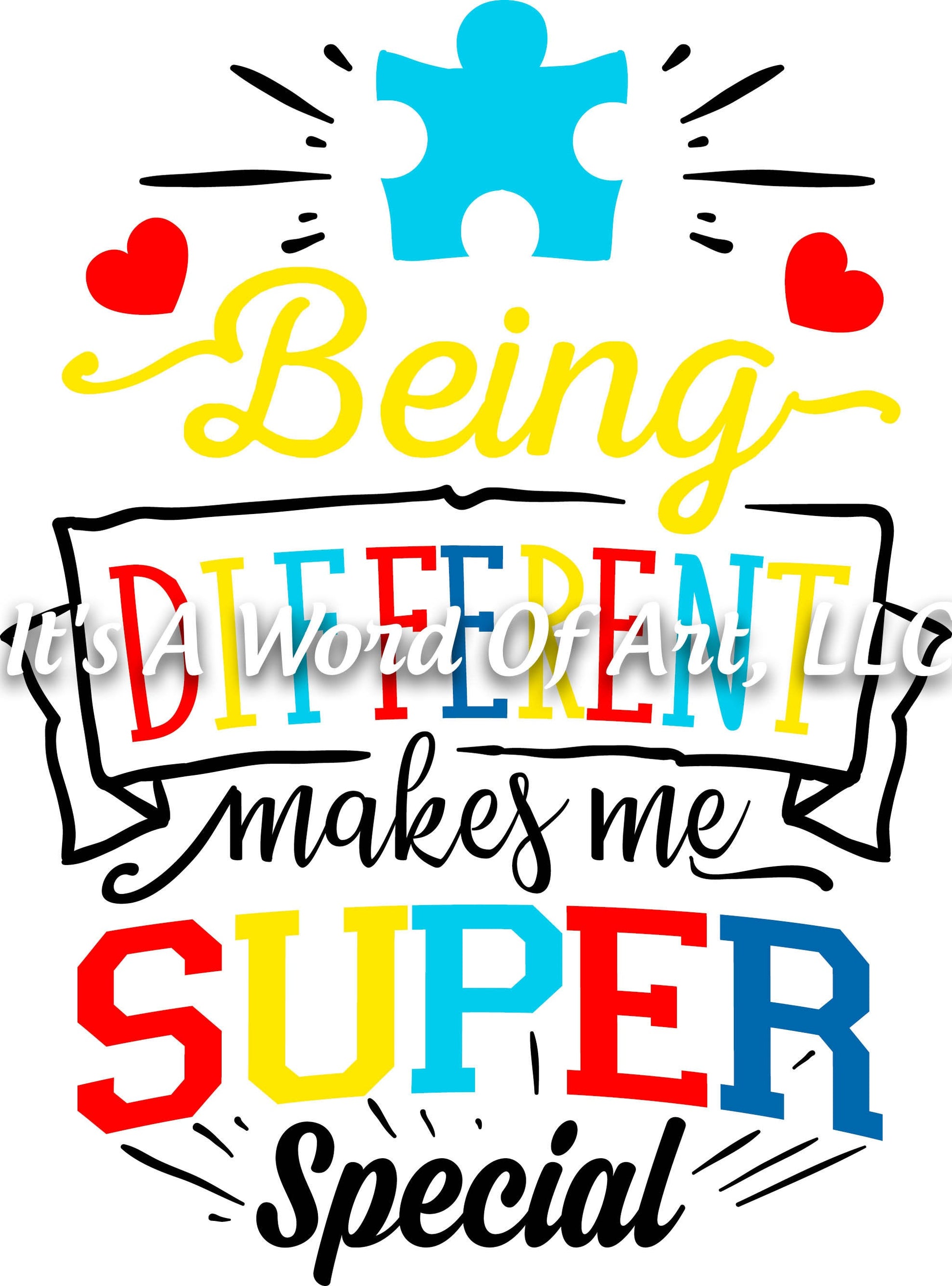 Autism 14 - Being Different Makes me Super Special Superman Autism Awareness - Sublimation Transfer Set/Ready To Press Sublimation Transfer