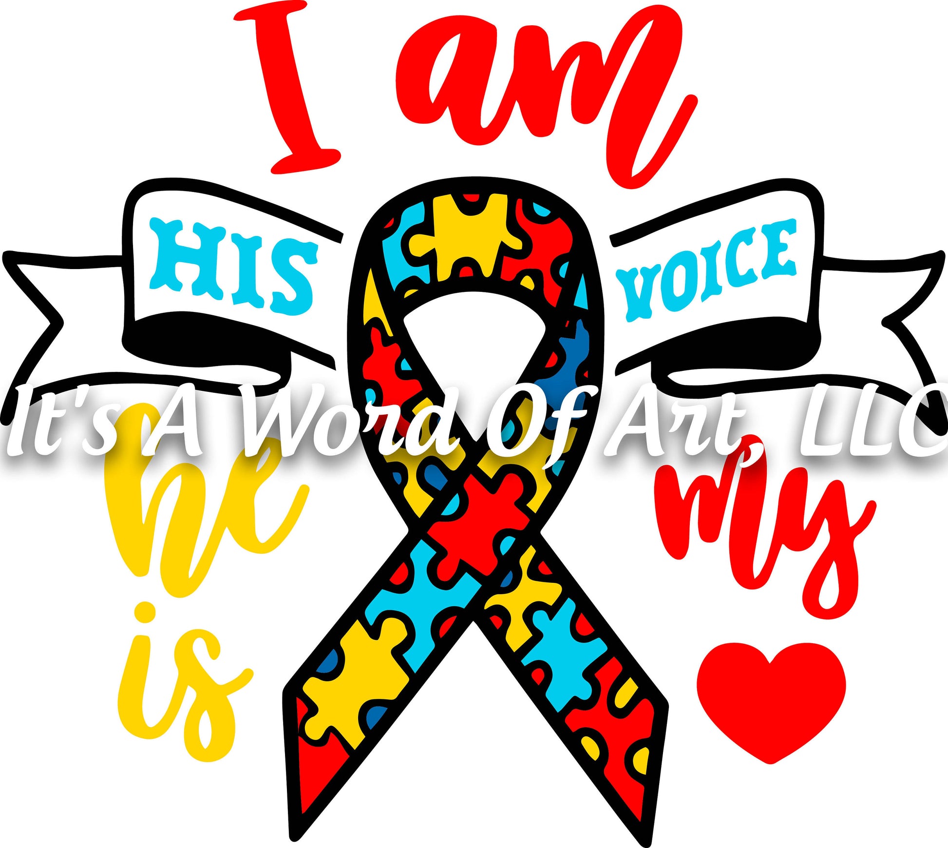 Autism 18 - I Am His Voice He Is My Heart Autism Awareness Ribbon - Sublimation Transfer Set/Ready To Press Sublimation Transfer
