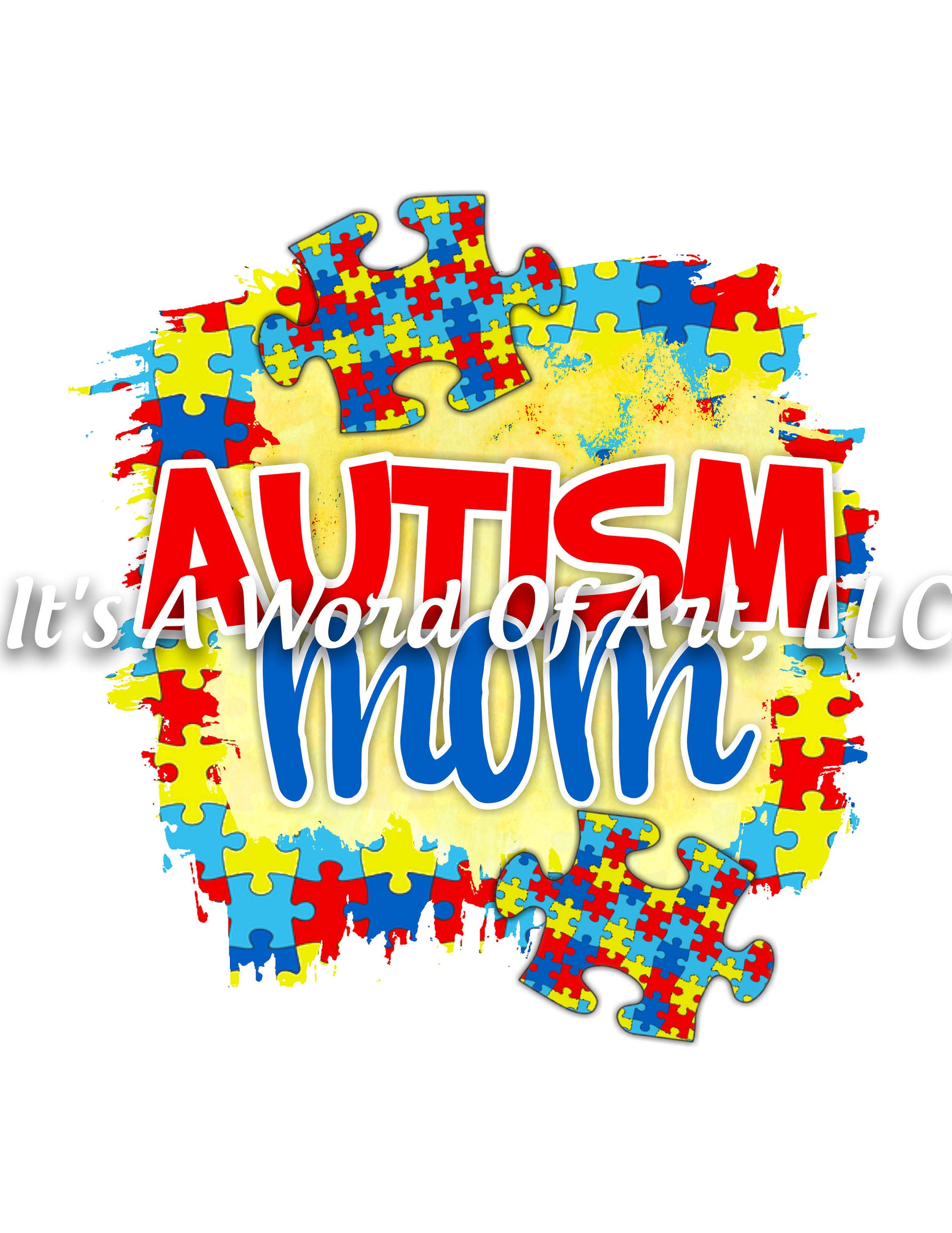 Autism 46 - Autism Mom Puzzle Piece Autism Colors - Sublimation Transfer Set/Ready To Press Sublimation Transfer