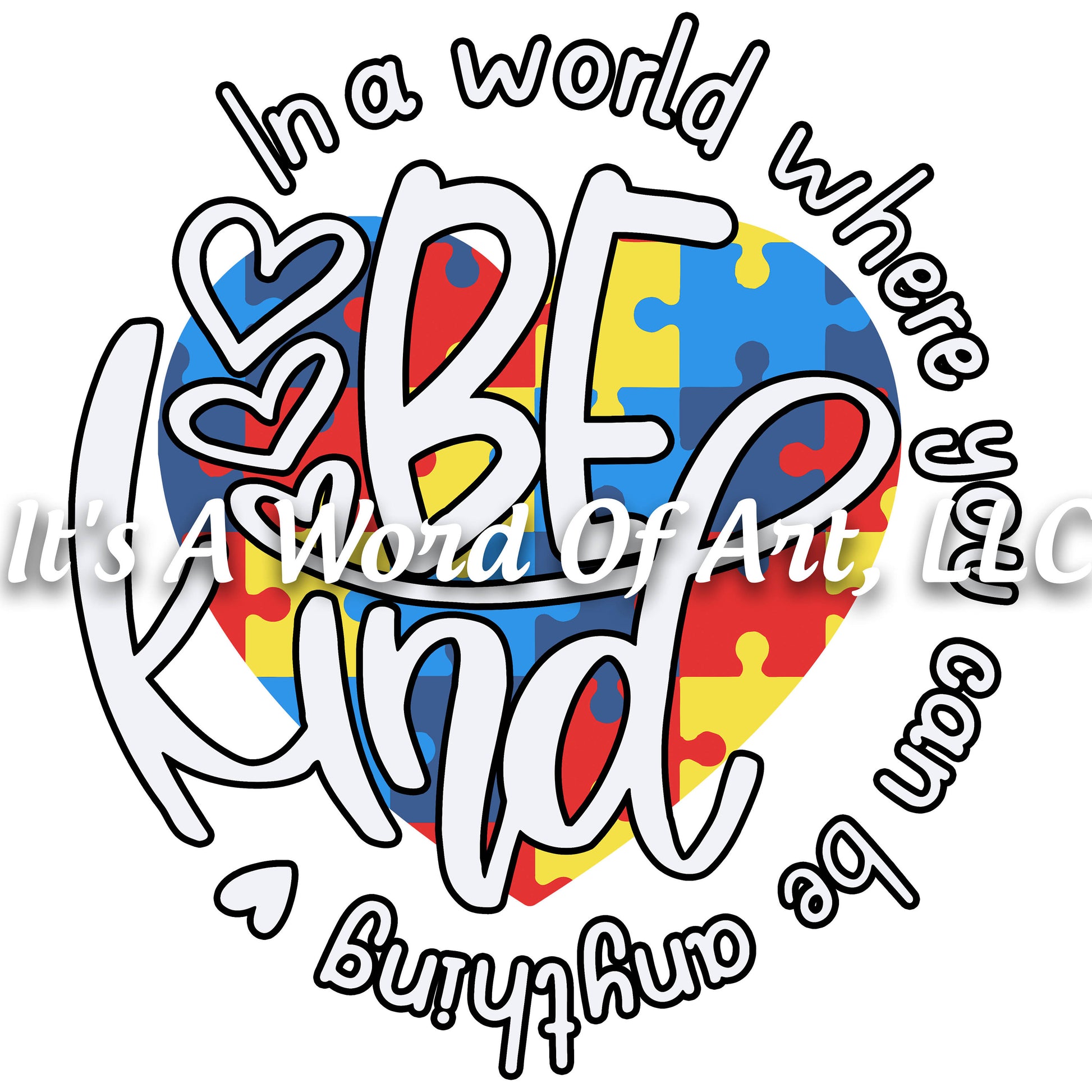 Autism 48 - In a World Where You Can Be Anything Be Kind Autism Puzzle Piece - Sublimation Transfer Set/Ready To Press Sublimation Transfer