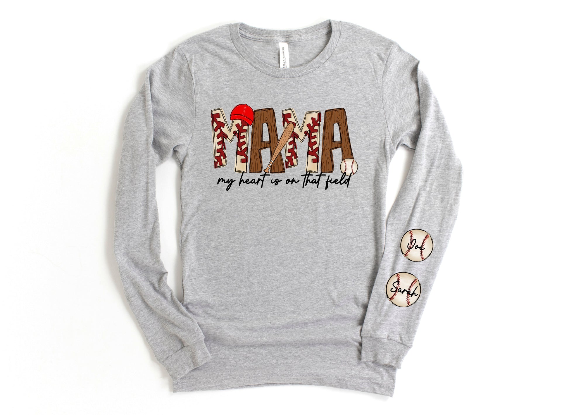 These transfers can be done in ANY name (mama, nana, mamaw, ect) with either Baseball, Softball, or a combination of both (see second photo). Can have up to 6 balls total (3 on each sleeve). Please be sure if selecting the combo name- please be sure to specify which sport goes with which names- for example Sarah-Softball, Tim-Baseball. Also be sure to choose a hat color!