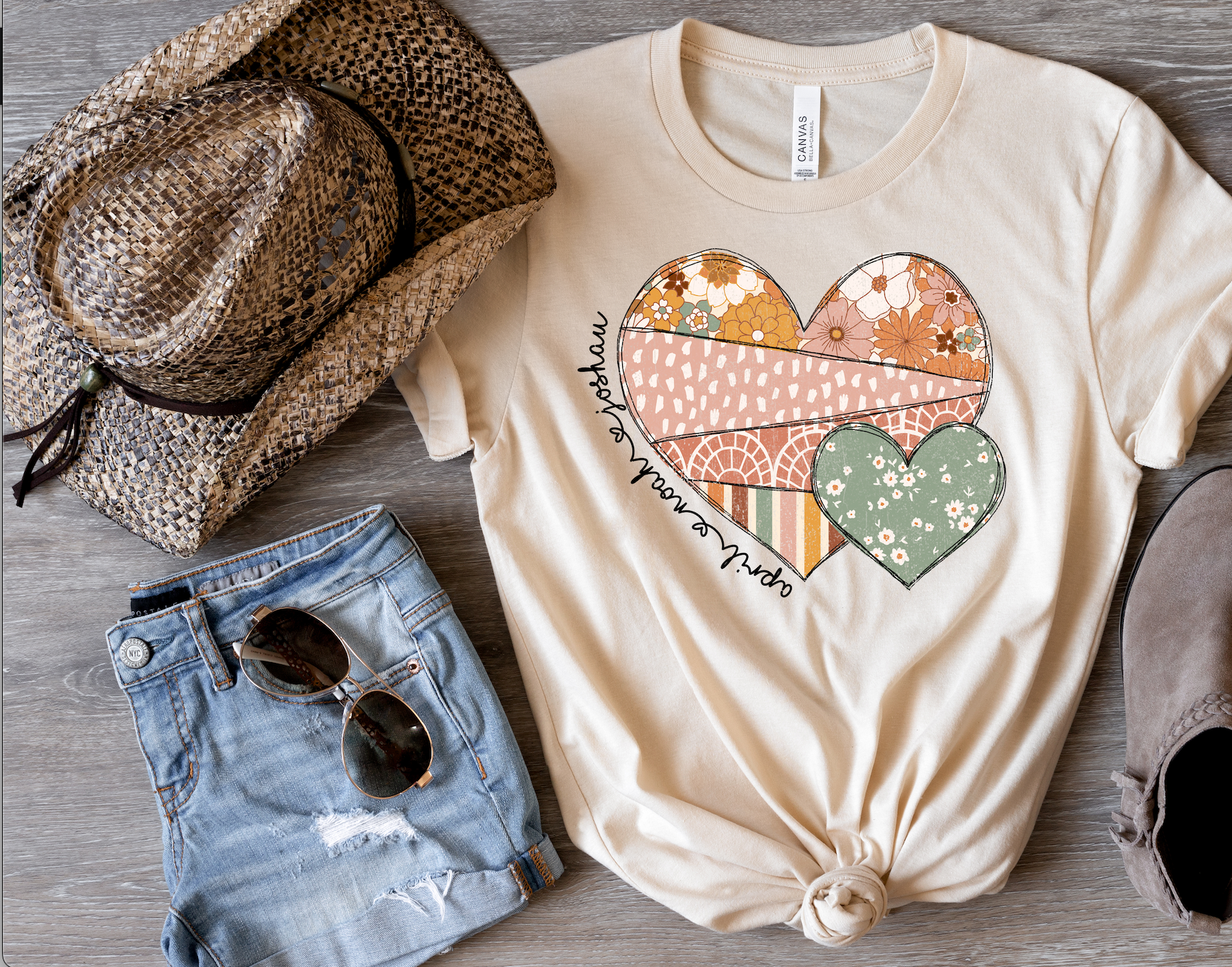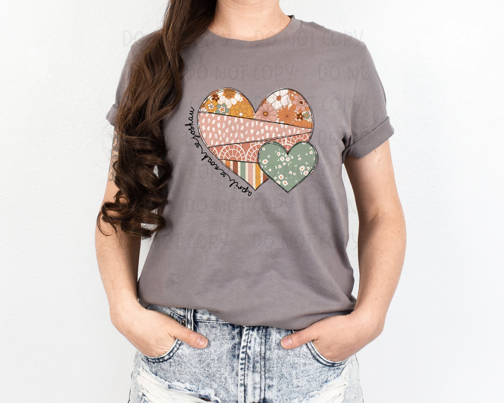 This shirt can be done with any names around the heart. Choose from a Bella Canvas Pebble or Soft Cream! Choose from Adult XS-4XL size (additional charge for 2XL and above). Please be sure to check all spelling, and separate names for around heart with a comma.