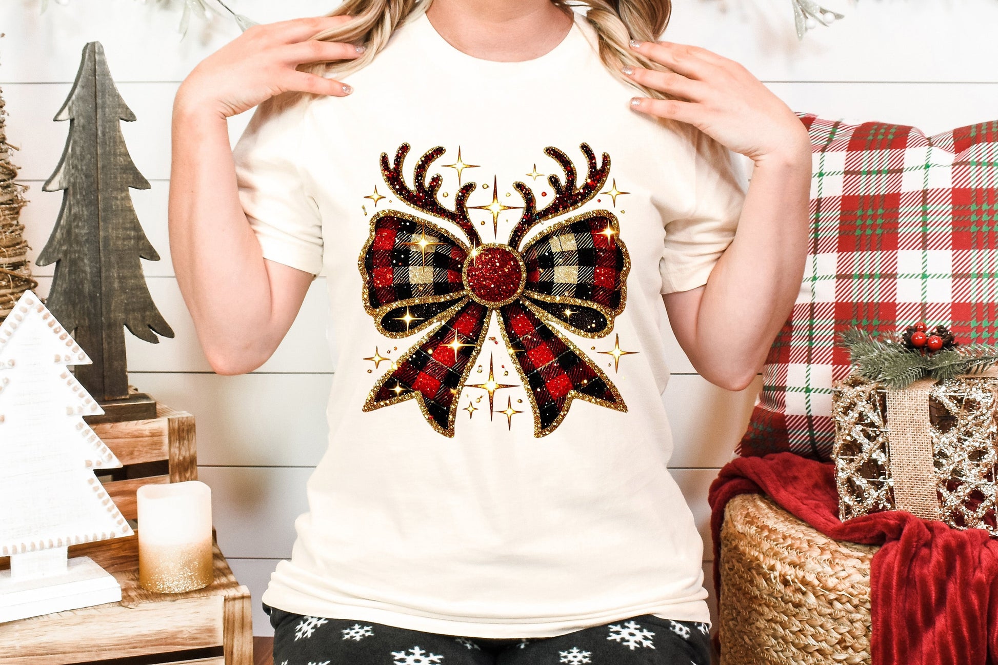 Christmas Reindeer Bow Adult Shirt- Christmas 1558