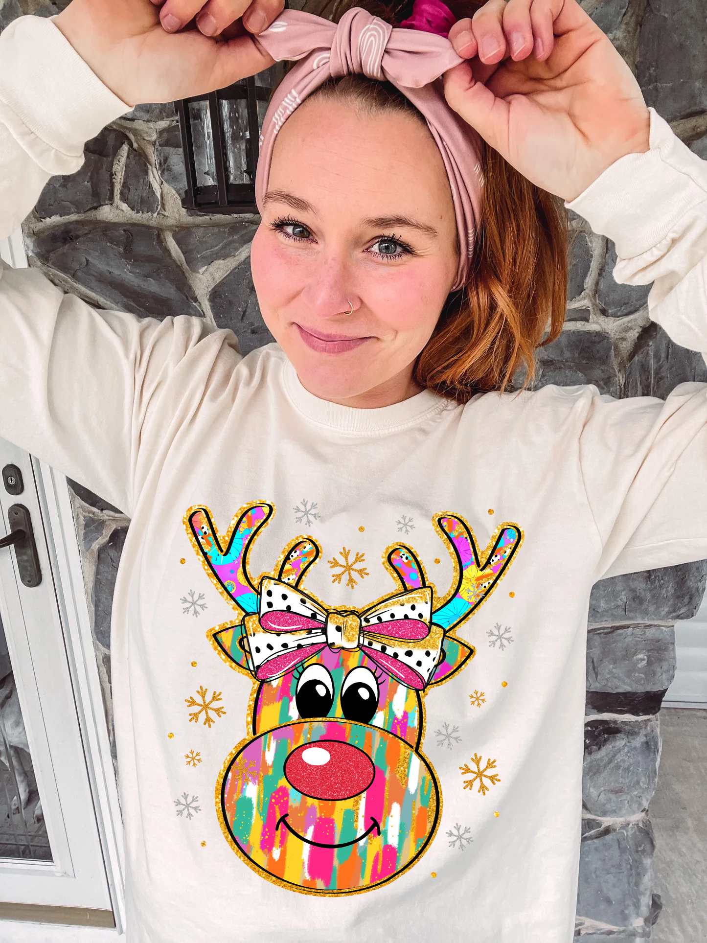 Colorful Coquette Christmas Reindeer Adult Shirt- Christmas 1563