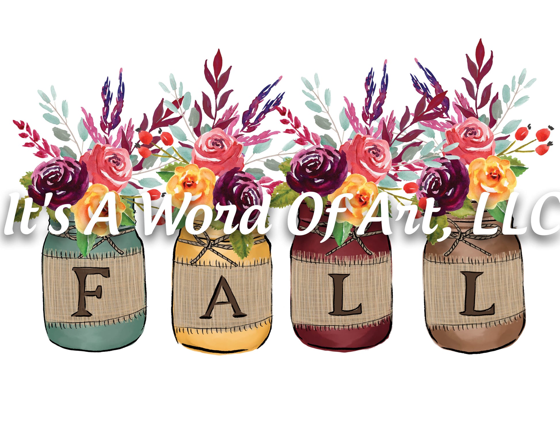 Fall 52 - FALL Mason Jars Bouquet Flowers Autumn - Sublimation Transfer Set/Ready To Press Sublimation Transfer Sub Transfer