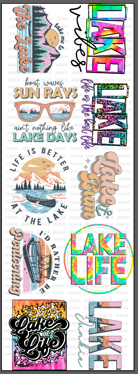 This is a Lake Life Themed 22"x 60" gang sheet with 10 Adult Transfers (12" on the longest side).