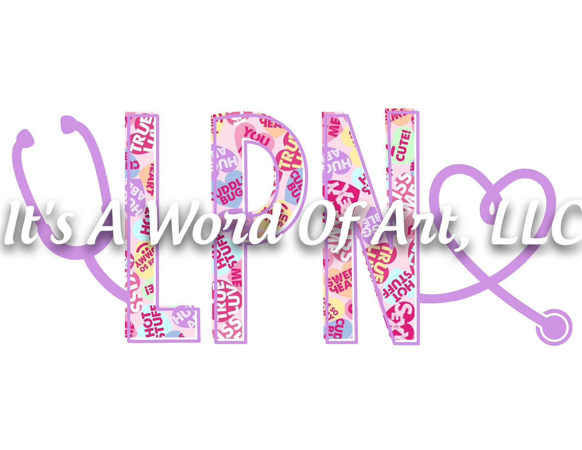 Valentines Day 127 - LPN License Practical Nurse Heart Stethoscope - Sublimation Transfer Set/Ready To Press Sublimation Transfer
