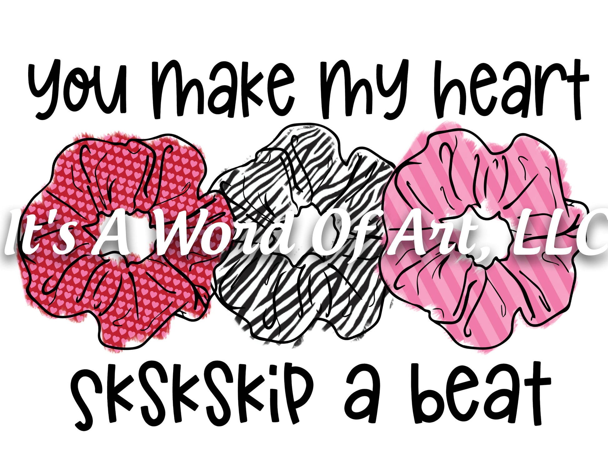 Valentines Day 132 - You make my heart Skskskip a Beat VSCO Girl Scrunchies - Sublimation Transfer Set/Ready To Press Sublimation Transfer